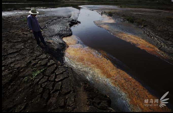安徽省慈湖化工園區,修了一條地下管道,污水每天從這裏排放長江,污水有時是黑色的,有時是灰白色的,有時是深紅色的,有時是黃色的,不同化工廠排放的污水顏色不同 2009年6月18日