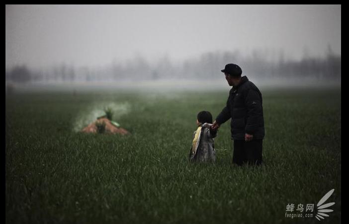 河南省西平縣洪河邊的張于莊村,22歲的朱小燕2007年在肚子裏長了一個很大的惡性腫瘤,經多家醫院治療無效於2008年7月去世。清明節四歲的孩子王穎跟爺爺為母親上墳 2009年4月2日