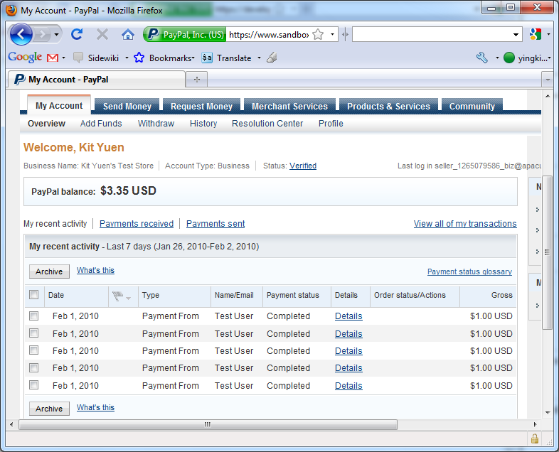 7. You will be redirected to the Test Site and log in your seller account