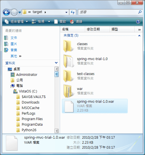 6. A .war file is built at /target and copy it to the Tomcat webapp folder