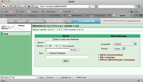 - MAMP web admin interface: http://localhost:8888/MAMP/