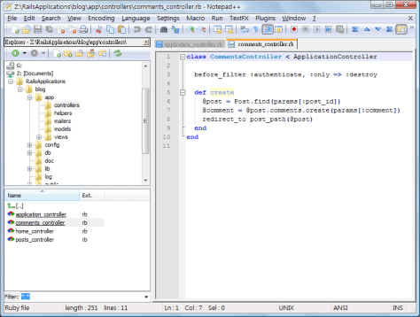 As i want to develop a Rails application, i would like to have an editor like TextMate which i can use in Windows. It seems that Notepad++ would be a good option but it does not have a project explorer for me to switch the files.