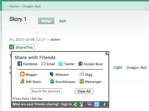 As i have enabled the ShareThis button for Story node type, now you can share the any Story node to your friends.