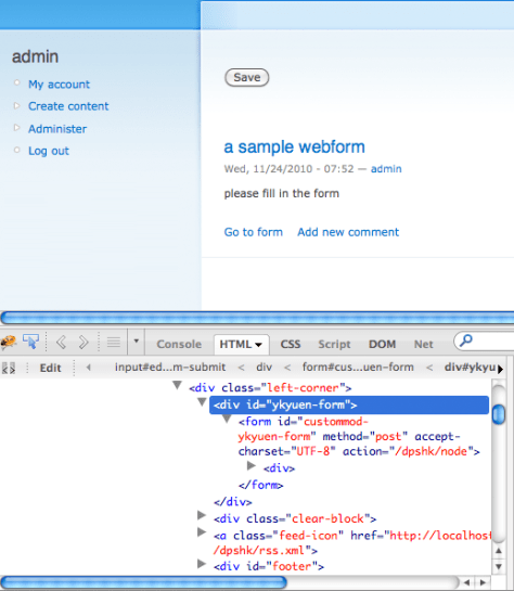 Save the new template file and we should find a submit button at our Drupal homepage.