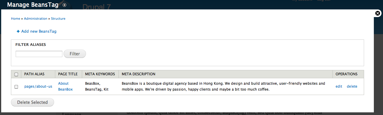 3. You could manage all the BeansTag @ Structure -> Manage BeansTag.