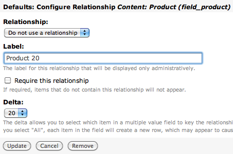 The relationship delta in Views helps you to link a specific referenced node. but it only has 1 to 10 options. I want to increase the delta limit, so let’s hack the CCK module. Yes, the CCK module instead of the Views module. =P