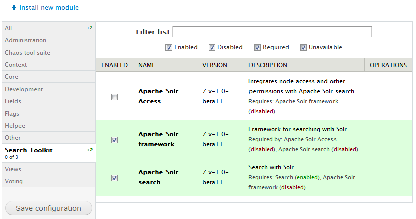 10. Now you can visit your Drupal website and enable the Apache Solr Search Integration module.