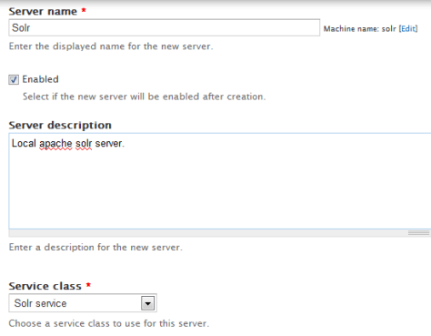 5. Go to Configuration » Search and metadata » Search API and click Add server. Make sure you select Solr service for Service class.