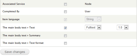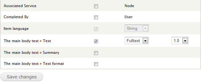 7. Select the fields for indexing. Please note that the only the indexed fields can be used in the search view.