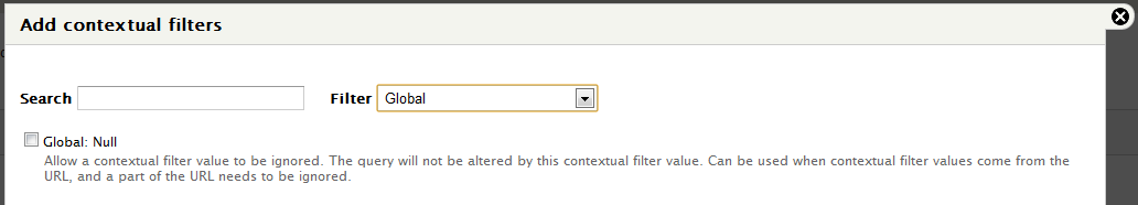 1. Add a Global: Null input in the View Contextual Filters settings.