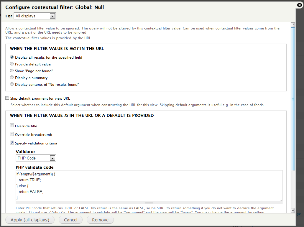 2. Thanks – just what I needed. Was driving me crazy trying to get a view to ONLY show results when the actual URL is not entered.