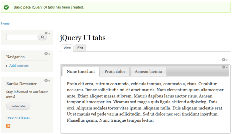 drupal_add_js('jQuery(document).ready(function(){jQuery("#tabs").tabs();});', 'inline');