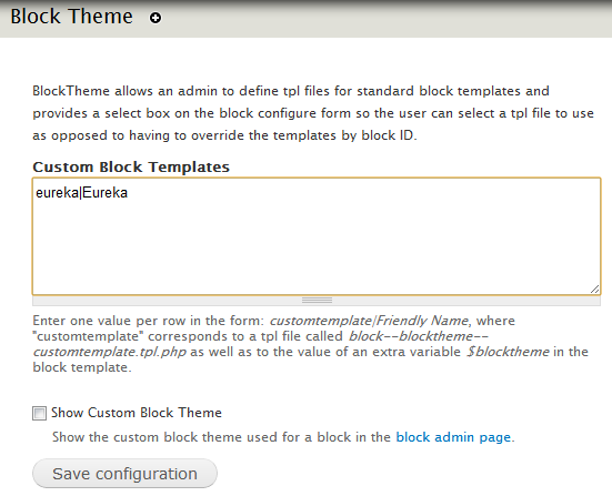 4. Customize the block--blocktheme--eureka.tpl.php. In this example, i will add a hello world greeting before the block content.