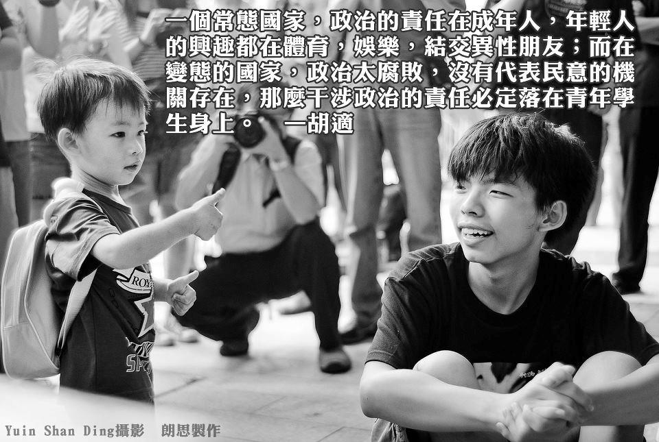 一個常態國家,政治的責任在成年人,年輕人的興趣都在體育,娛樂,結交異性朋友;而在變態的國家,政治太腐敗,沒有代表民意的機關存在,那麼干涉政治的責任必定落在青年學生身上。
