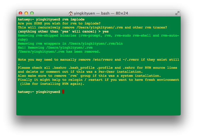 So i need to uninstall the rvm on macbook air. This could be done by simply executing: