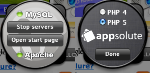 During the installation, you can include the MAMP control panel into you Mac Dashboard. This is quite helpful for you to start and stop the server. you can also pick either PHP4 or PHP5 by switching to the back panel by clicking the i button which is located under the Apache label on the front panel.